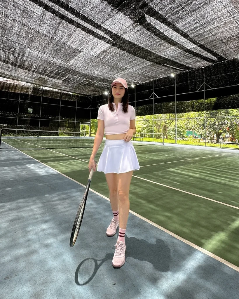- Silhouette Management: The defined waist and flared or pleated silhouette of the tennis skirt provides movement and shape, balanced by the cropped polo that keeps the top fitted and modern.