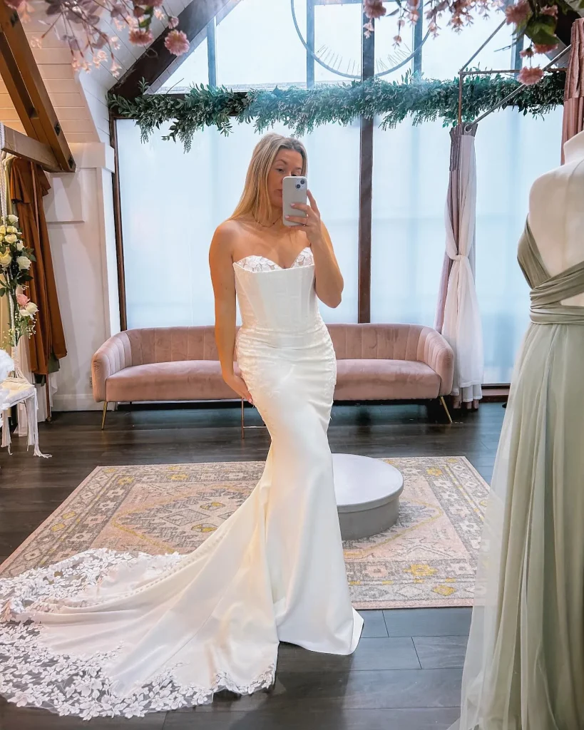 It’s about understanding how silhouette, fabric, and detail work together to create a feeling, and then applying that knowledge to choose a gown that fits your venue, your body, and your unique romantic charm.
