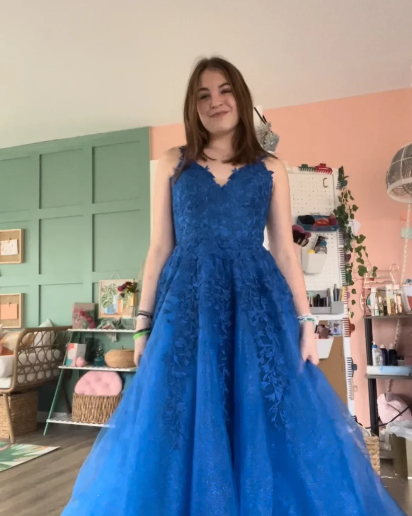 - Color Stories: The bold blue is the main event. Pair it with neutral or metallic accessories nude heels, a silver clutch, or gold jewelry.