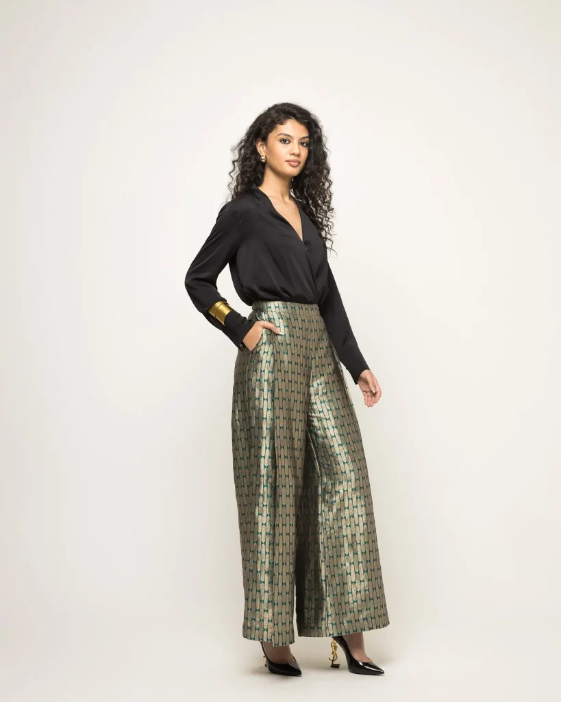 - Texture Play: The rich, woven texture of brocade is the centerpiece. Pair it with a simple, smooth top in silk, satin, or fine-gauge cashmere to let the pants shine.