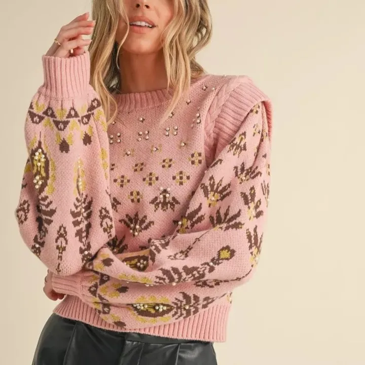- The Look: A classic Fair Isle or patterned knit sweater styled with a dressy bottom.