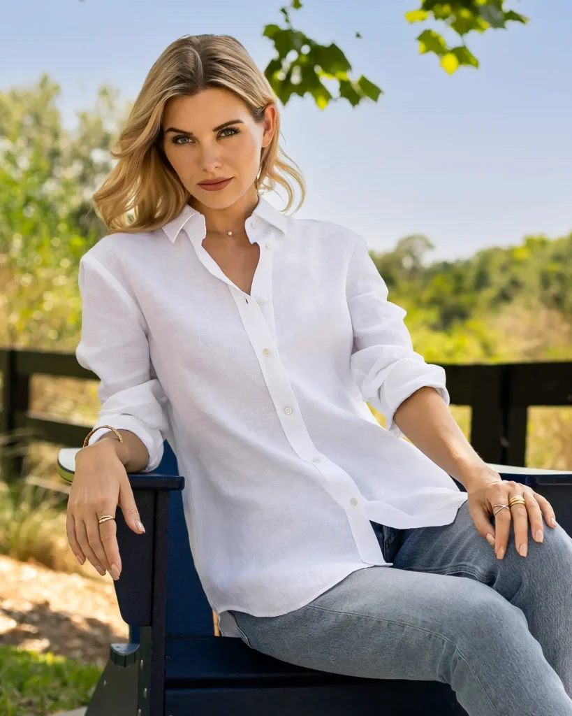 - Signature Item: A classic White Button-Down Shirt in linen or a cotton/linen blend.