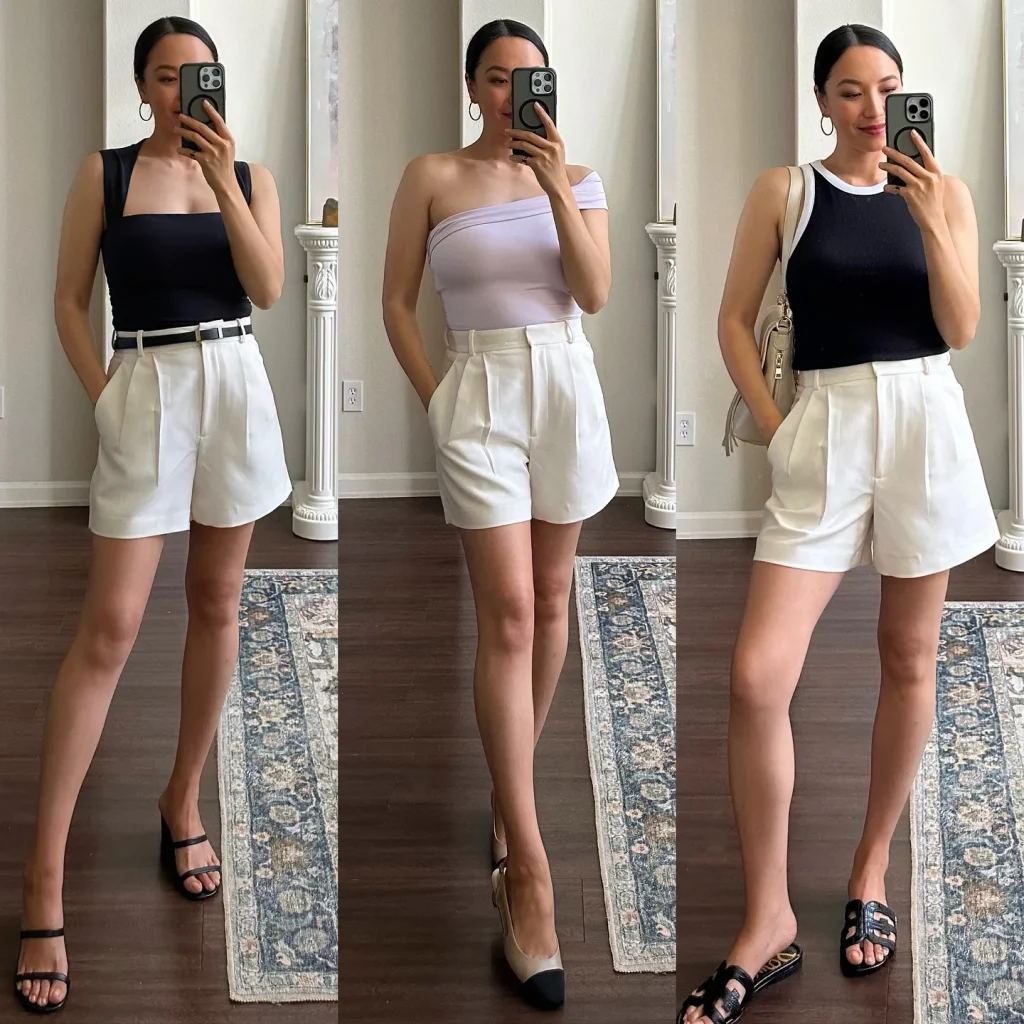 - Styling Tip: Tuck a crisp striped or solid t-shirt or a simple tank into high-waisted paperbag shorts, add a belt, and finish with chic flat sandals or espadrilles for an effortlessly put-together smart casual look.