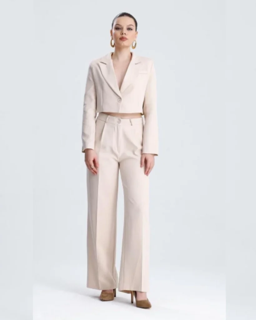 A cropped blazer paired with high-waisted trousers gives a polished yet modern look. Stick to neutral tones for versatility.