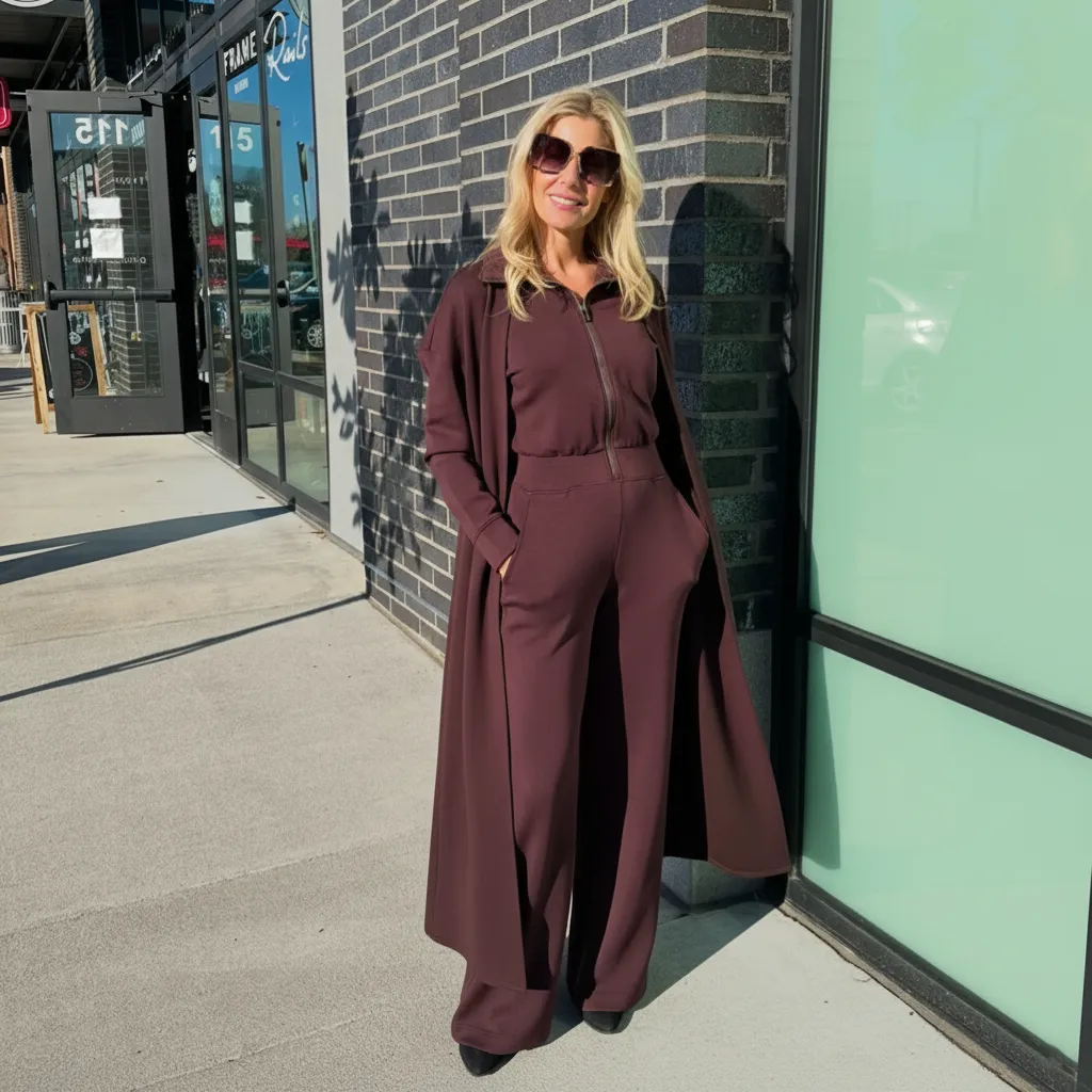 Duster Coat with a Wide-Leg Jumpsuit