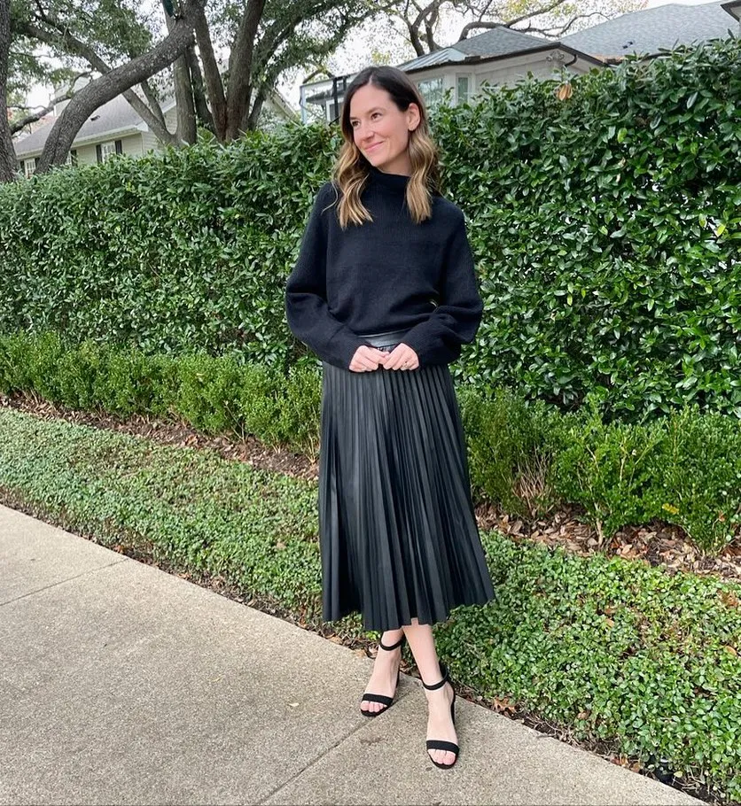 A lightweight knit sweater tucked into a pleated midi skirt is effortlessly chic. Stick to neutral or pastel tones for a soft spring aesthetic.