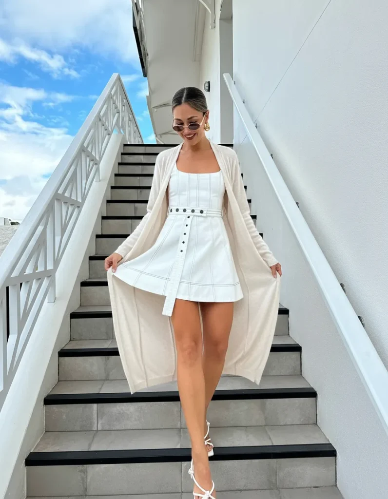 Longline Cardigan with a Belted Dress