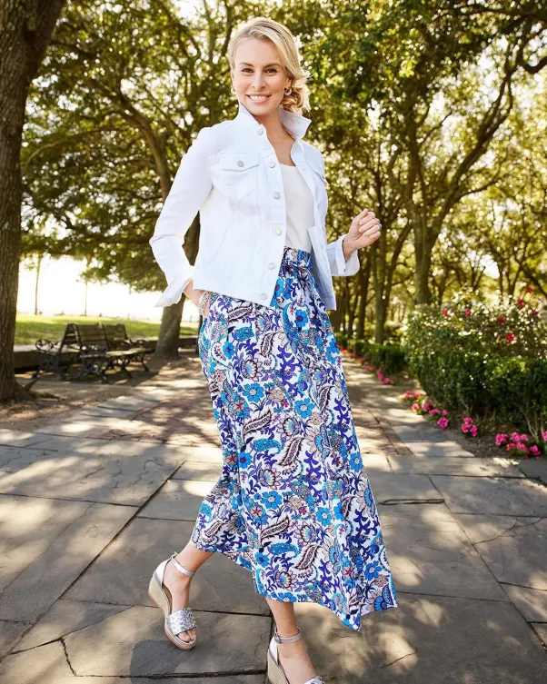 Denim Midi Skirt with a Lightweight Cardigan