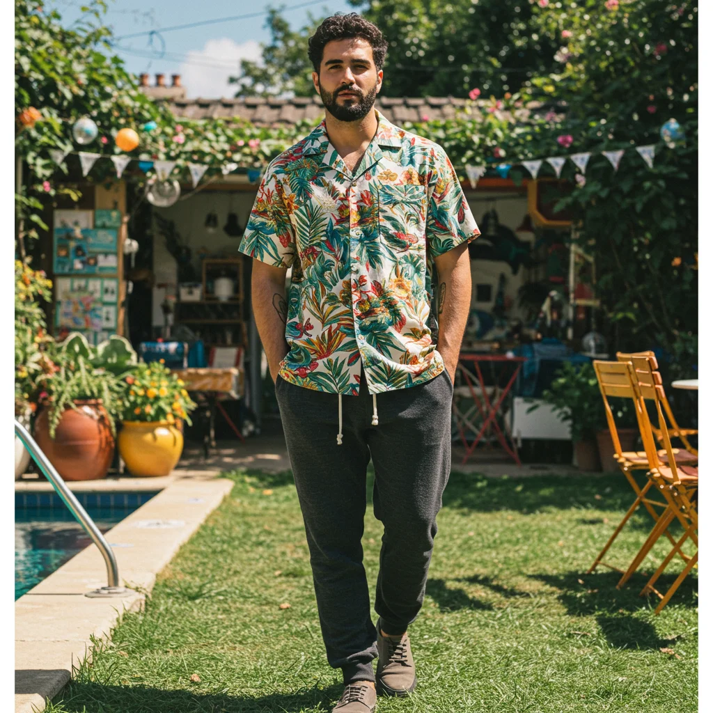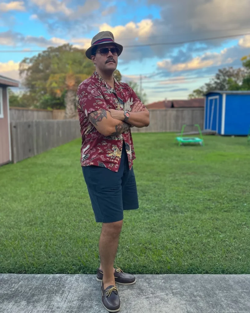 A Hawaiian shirt worn paired with shorts is the ultimate vacation-ready streetwear look.