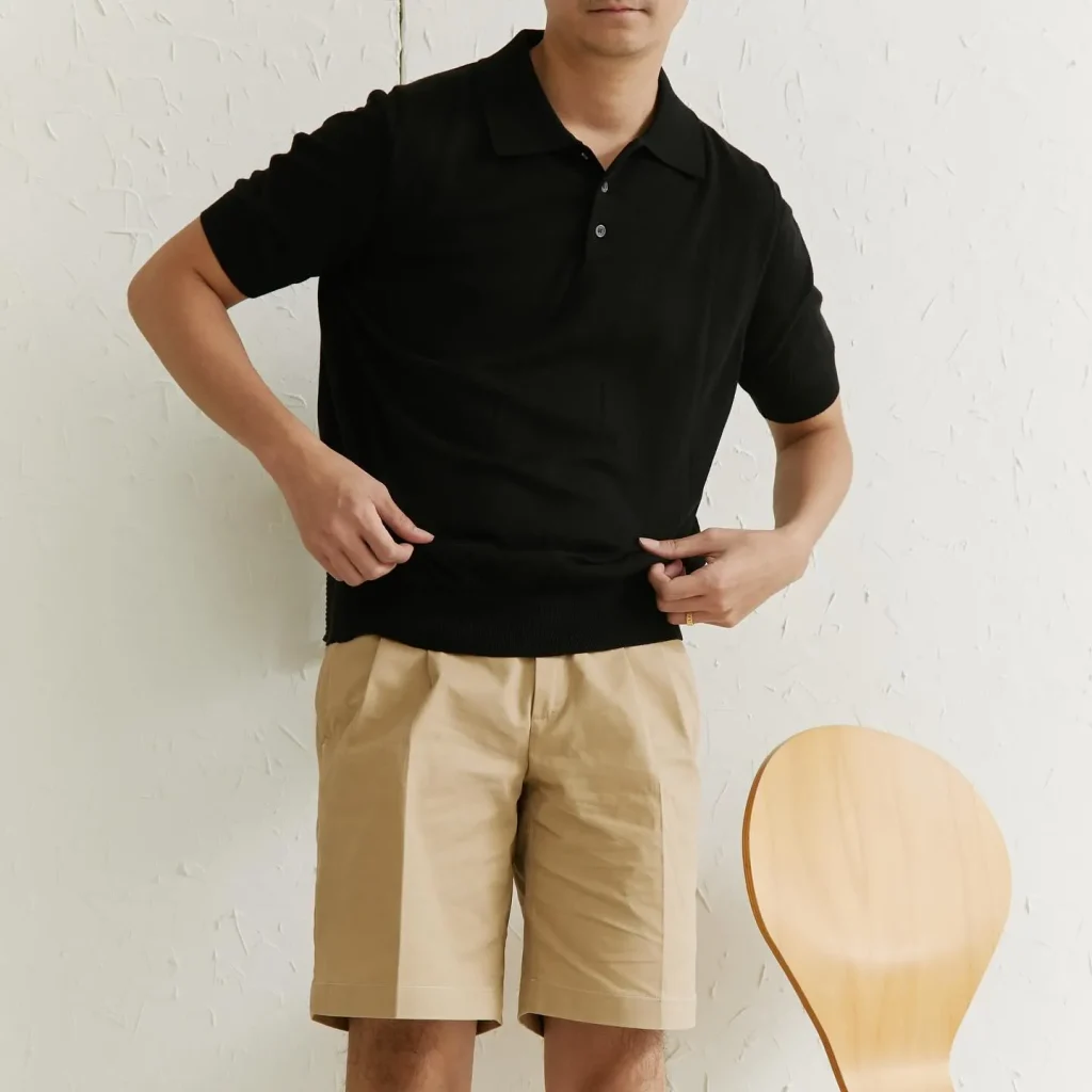 A knit polo elevates any outfit. Pair it with pleated shorts and boat shoes for a classic, slightly preppy aesthetic.