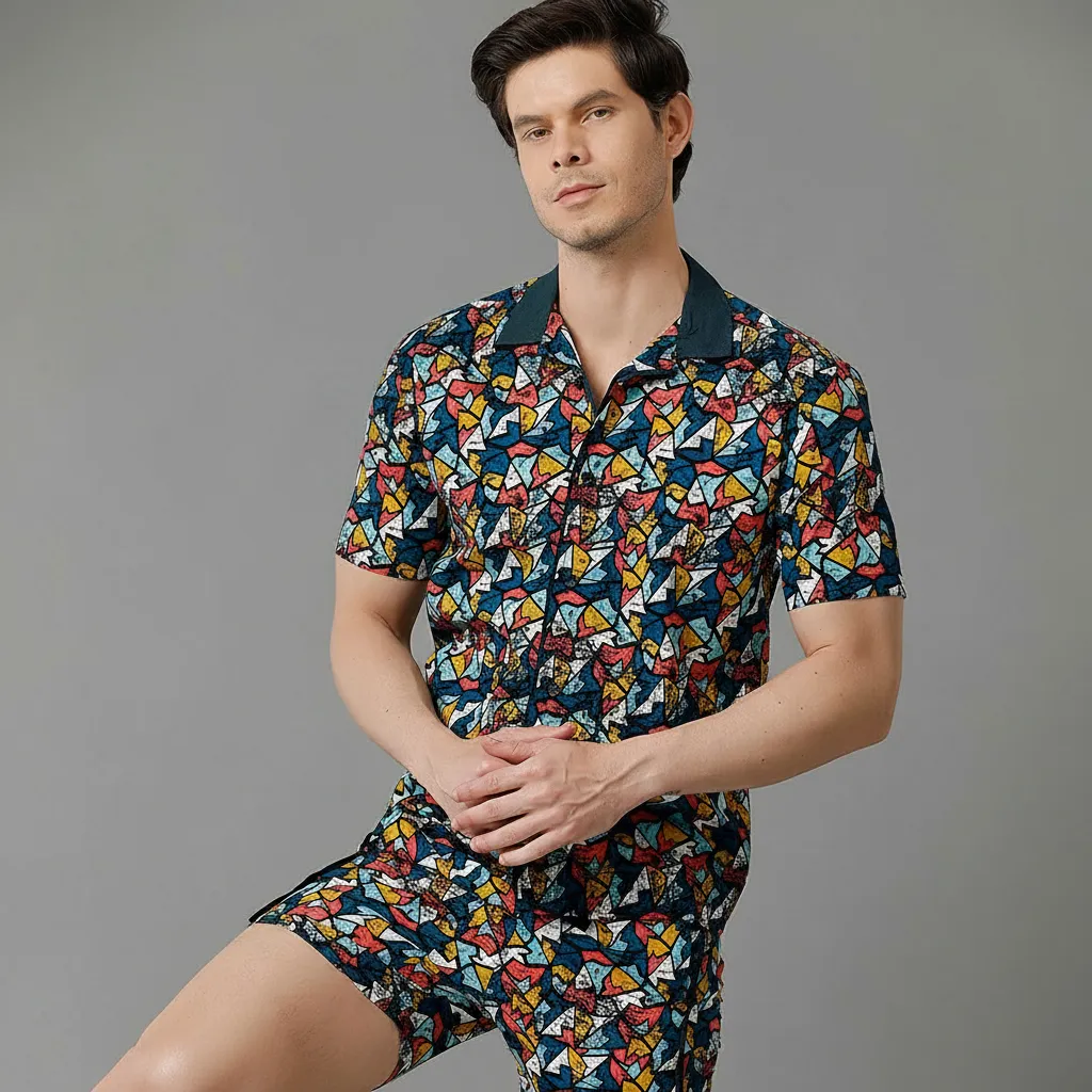 Matching patterned short sets are bold but make getting dressed effortless. Go for tropical or geometric prints and keep accessories minimal.