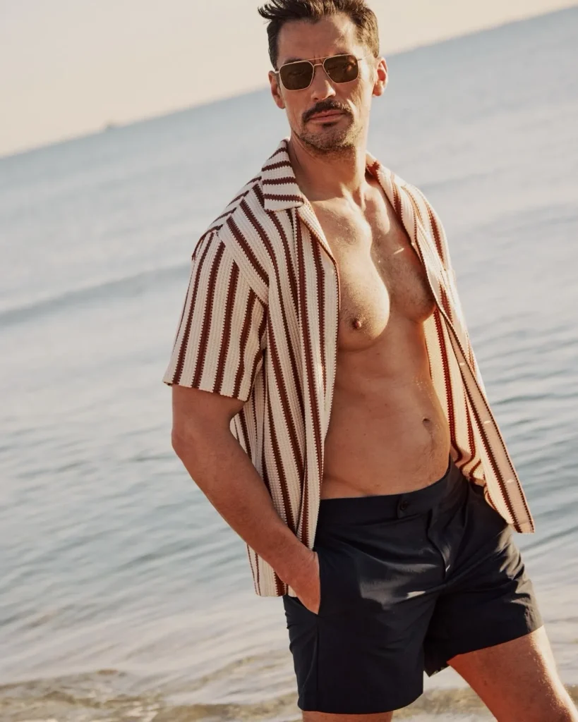 If you are hitting the beach, a short-sleeve button-down over swim trunks is the way to go. Unbutton it a bit for a carefree, coastal look.