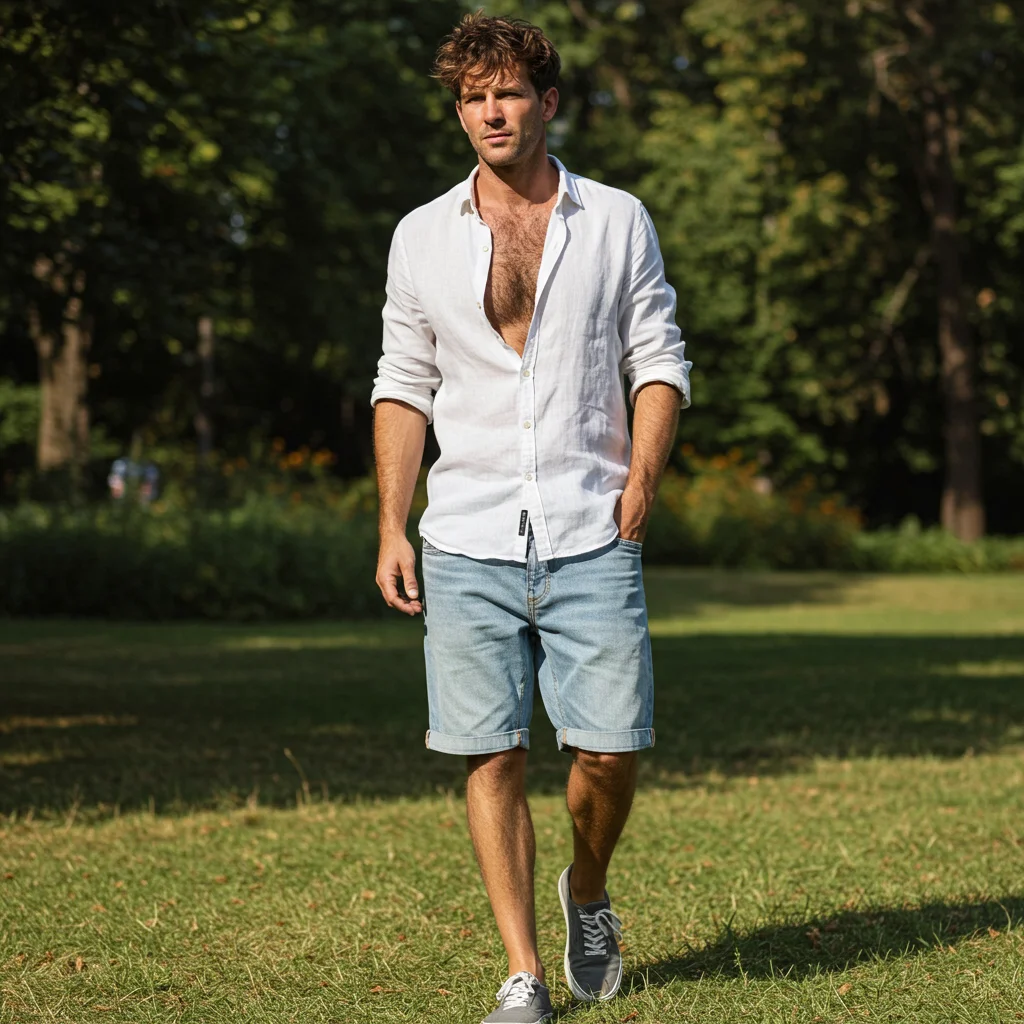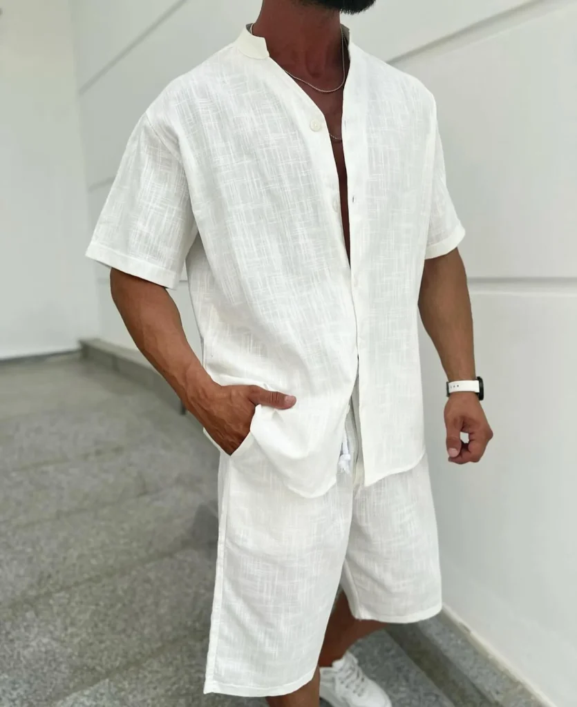 A breathable linen button-down paired with chino shorts is the ultimate summer staple. Roll up the sleeves and throw on some loafers for a relaxed but refined vibe.