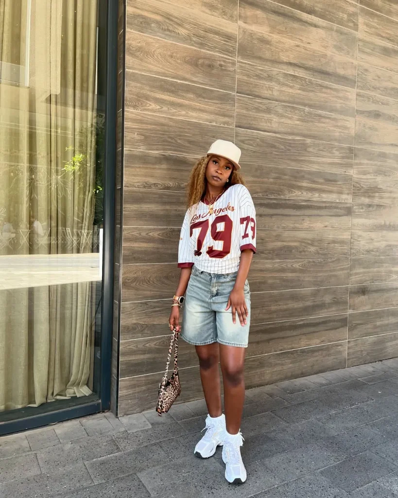 Whether you are rocking a jersey with biker shorts or leveling up with a varsity jacket, the key is to balance sporty pieces with trendy elements.
