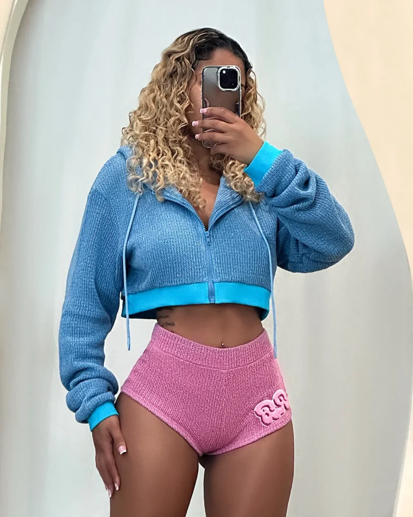 A cropped hoodie and high-waisted shorts combo is both cozy and cool, making it perfect for a soccer game.