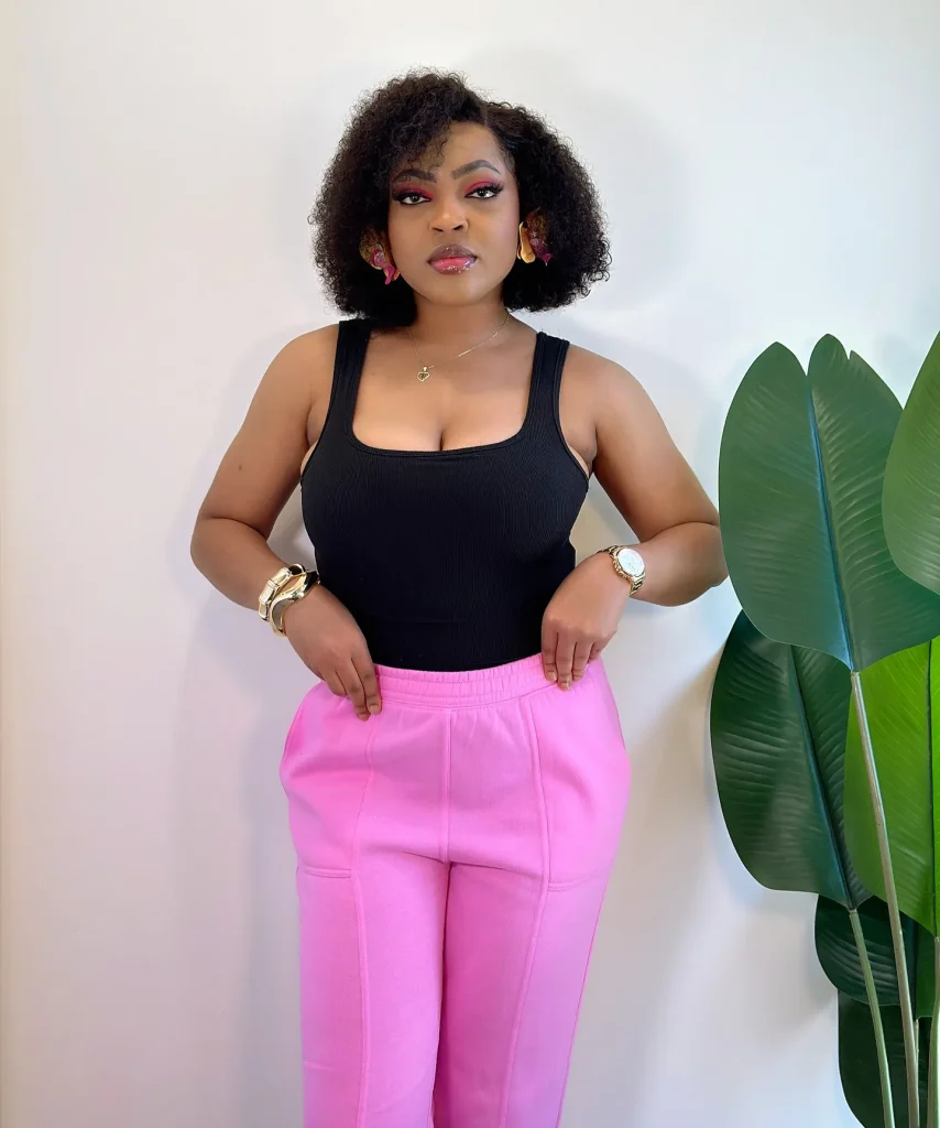 A fitted tank bodysuit with oversized sweatpants creates an effortlessly cool contrast. Pair with statement sneakers to finish the look.