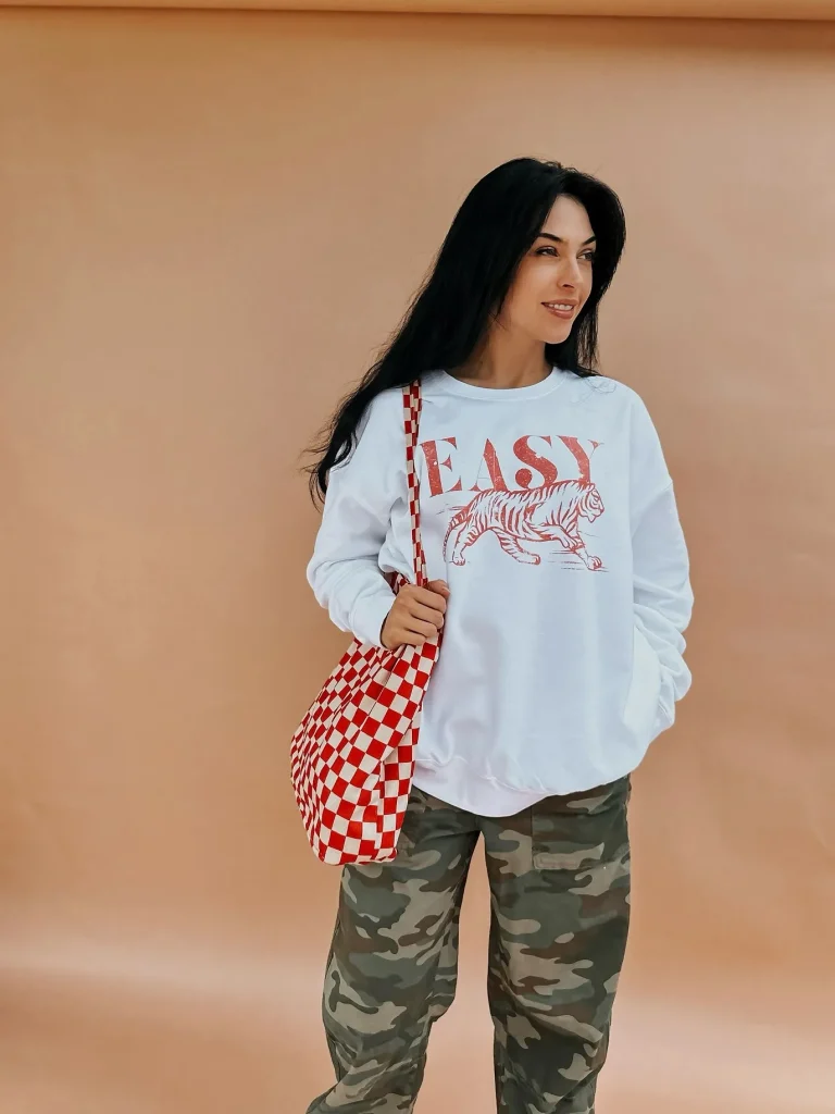 Cargo pants add an urban edge to a team sweatshirt. Add sunglasses and sneakers for a cool, effortless look.