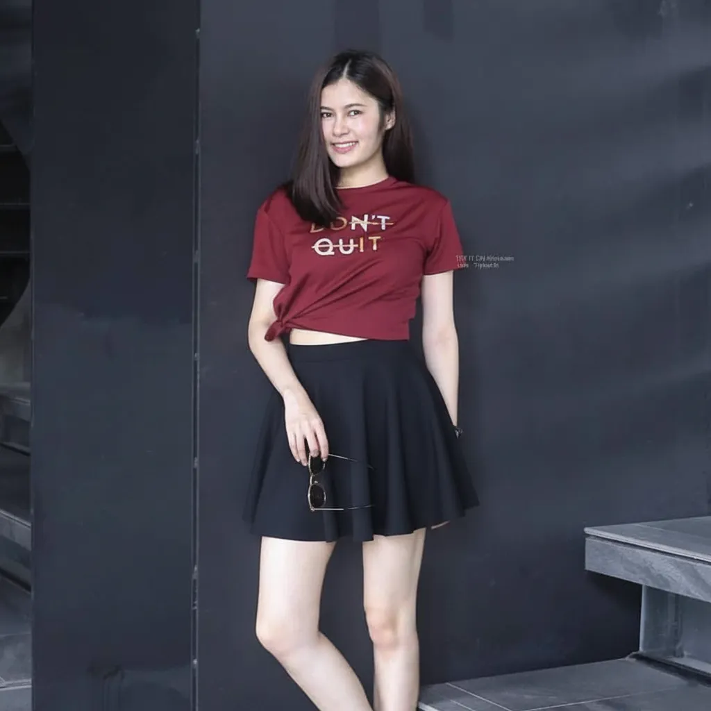 A tie-front tee tucked into a skater skirt is fun, feminine, and totally Instagram-worthy.