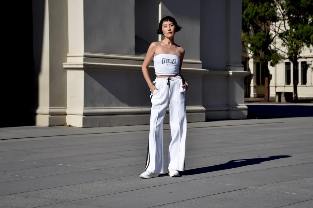 A cropped tank with high-waisted joggers is perfect for staying cool while keeping a sporty edge. Add chunky sneakers for an effortless finish.