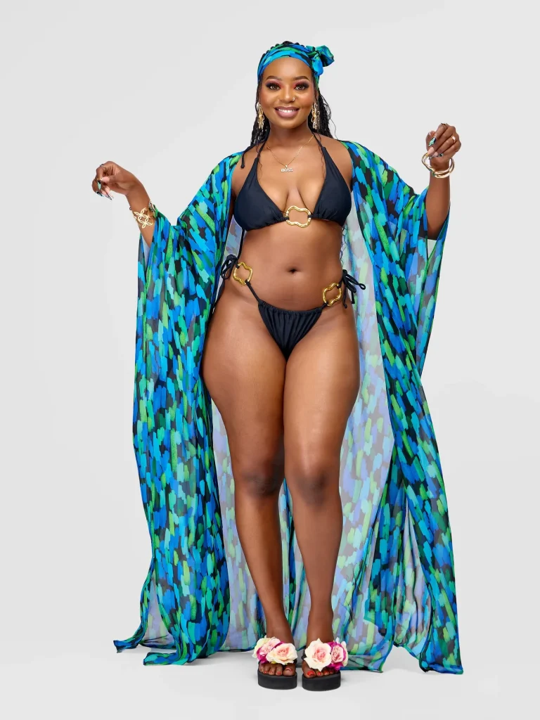 Layer a printed kimono over a bikini top and denim cutoffs for an effortlessly cool festival look. Finish with stacked rings and western boots.