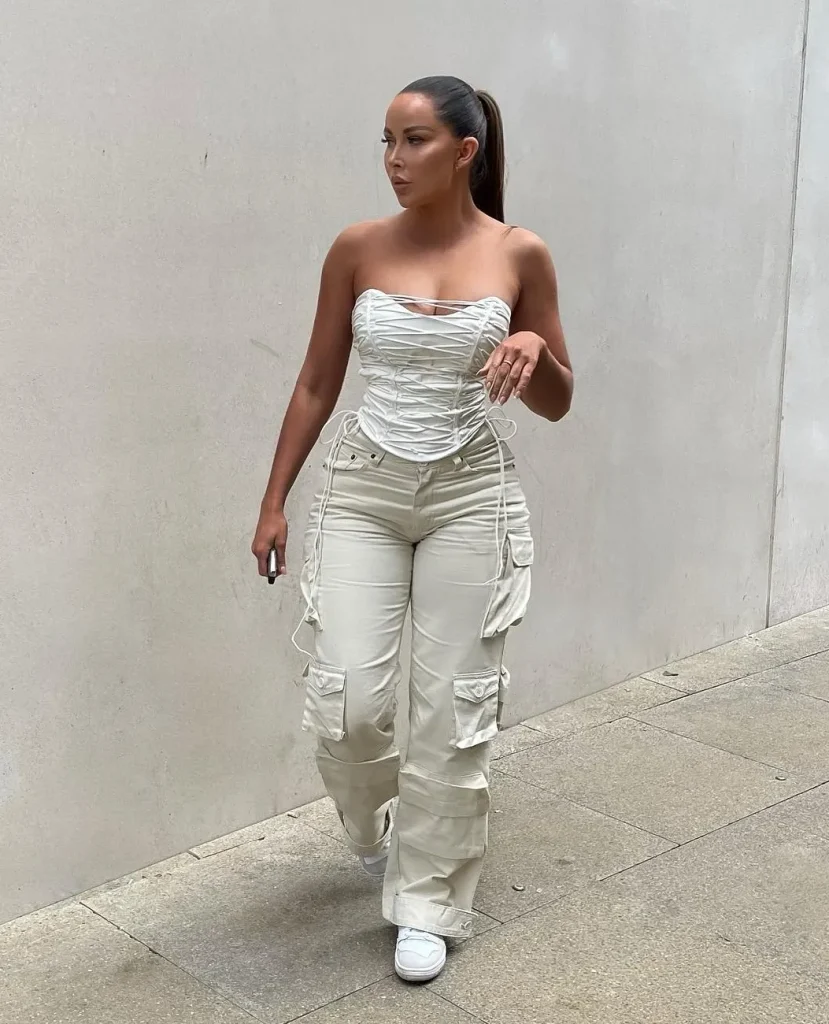 A structured leather corset paired with oversized cargo pants is the perfect mix of edgy and effortless. Add chunky boots for extra drama.