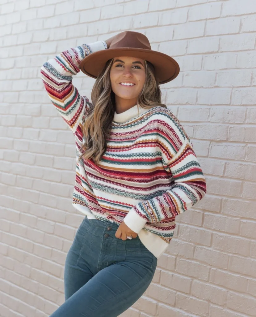 - The Look: A classic Fair Isle or patterned knit sweater paired with your favorite jeans.