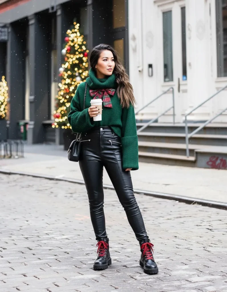 - Festive Vibe: This is for the woman who wants a festive look with a bit of an edge. It’s cool, modern, and perfect for a night out with friends during the holiday season.