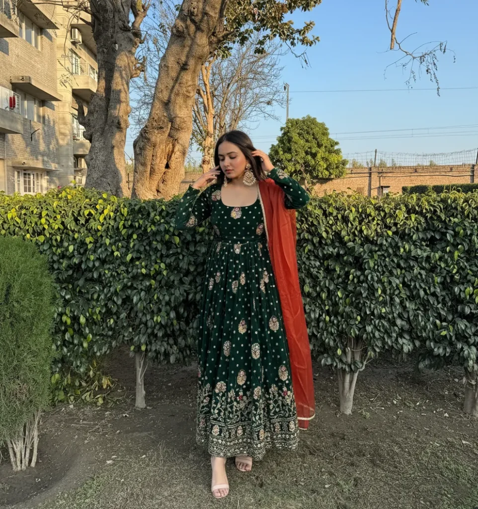 - Styling Strategy: The beauty of an Anarkali is that it’s a complete outfit. Simply add a pair of heels or embellished juttis and statement earrings.