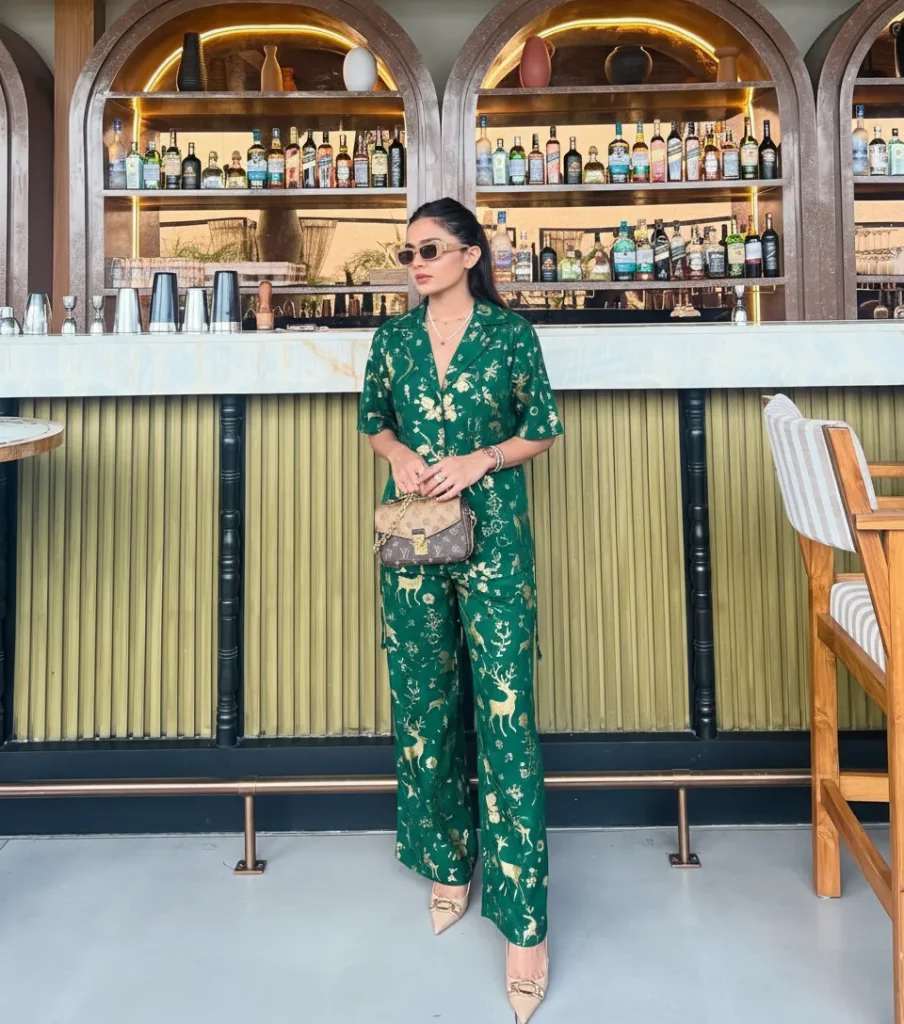- Festive Vibe: A co-ord set is a modern, easy way to look instantly put-together. The addition of a gold foil print (think subtle stars, leaves, or abstract patterns) makes it festive without needing extra sparkle.
