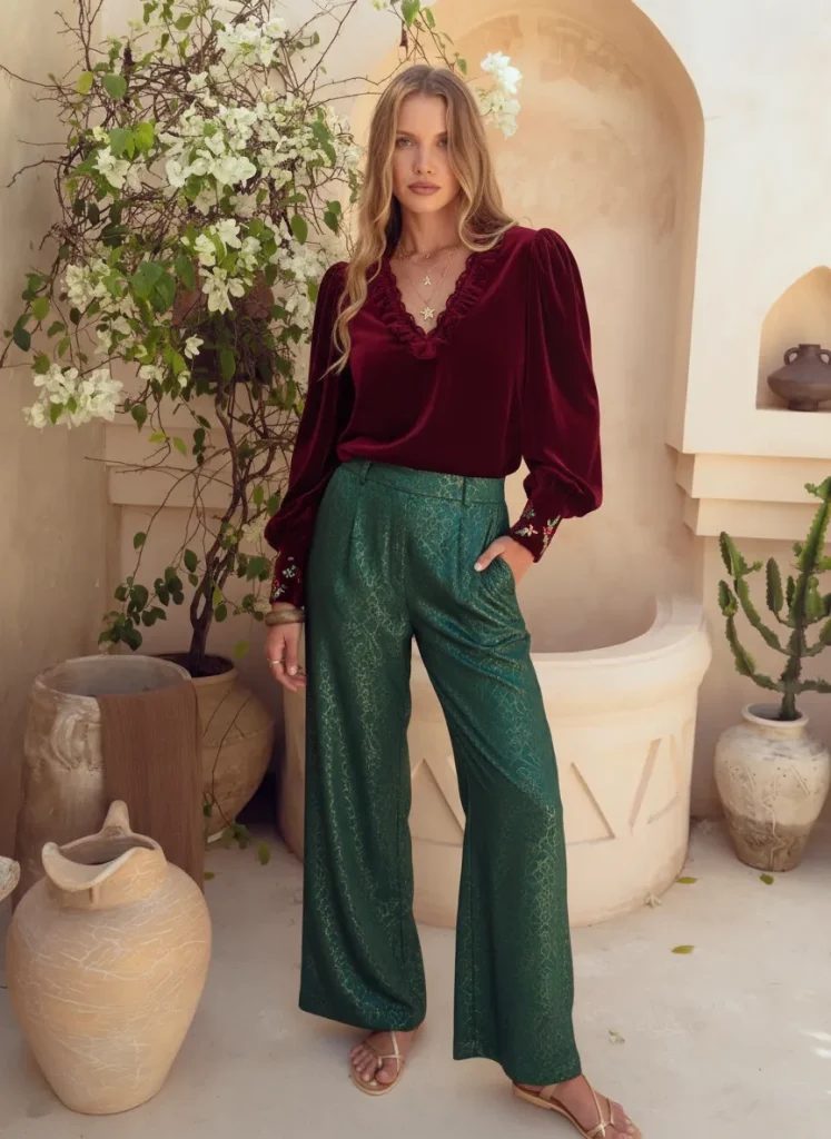 - Color Palette: A crisp white or black statement blouse is incredibly versatile, but for the holidays, try one in a rich red, green, or a festive print.