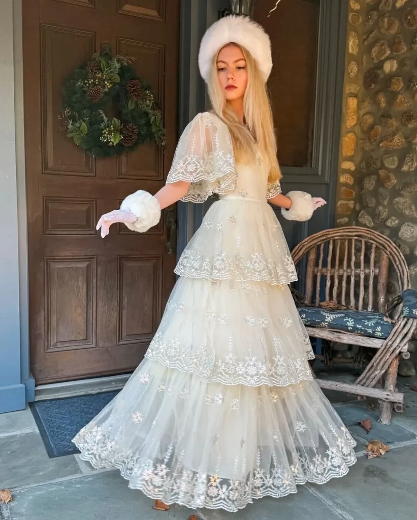 - Festive Vibe: This look blends traditional craftsmanship with festive cheer. It’s graceful, intricate, and perfect for a more traditional Christmas celebration or family gathering.