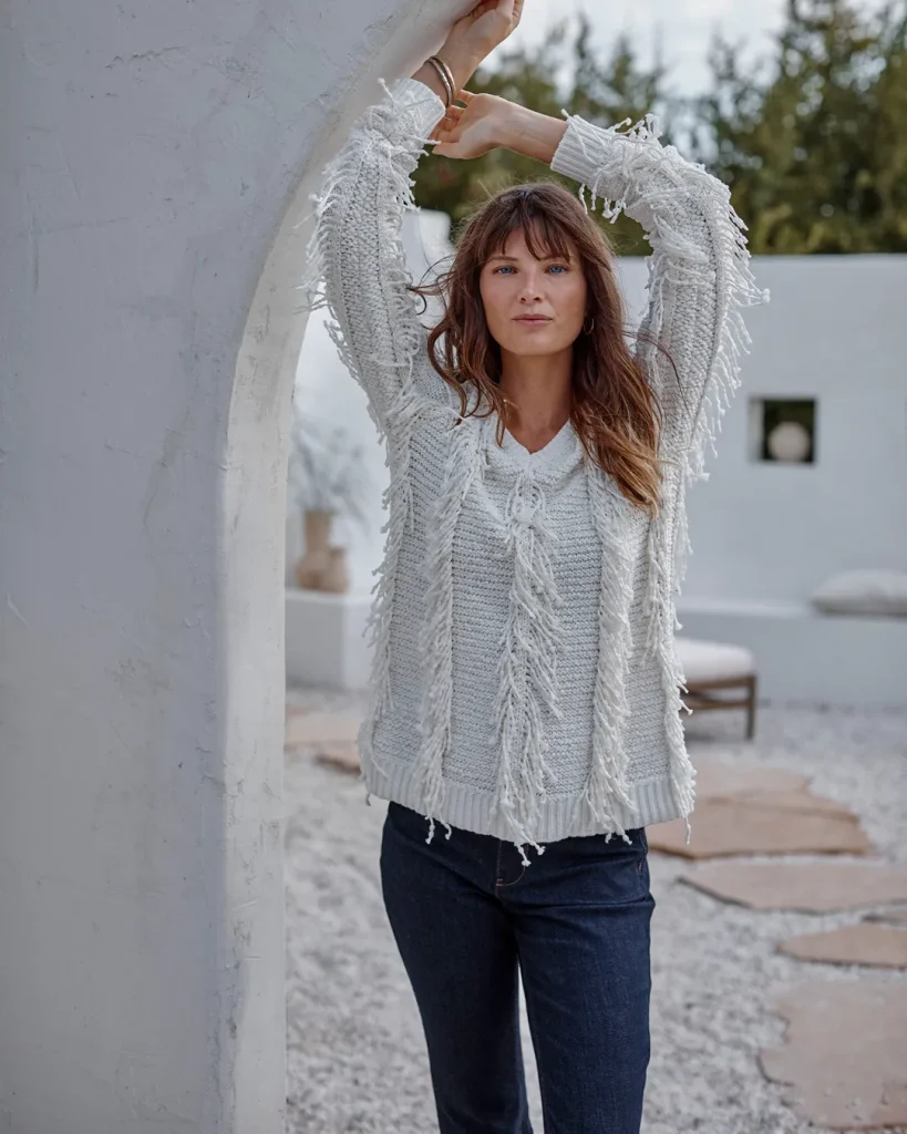 - Styling Tip: A half-tuck of the sweater into your jeans can define your waist and keep the silhouette from feeling too bulky.
